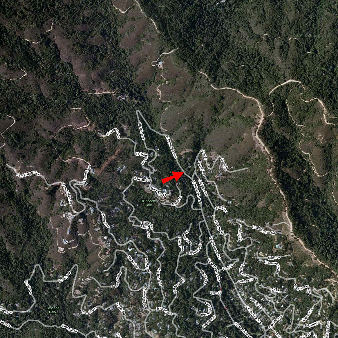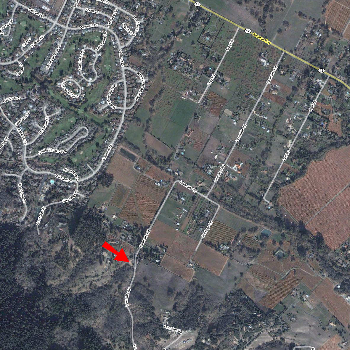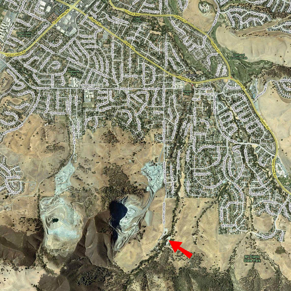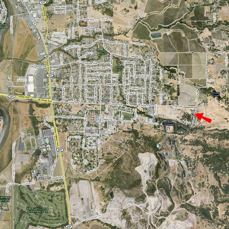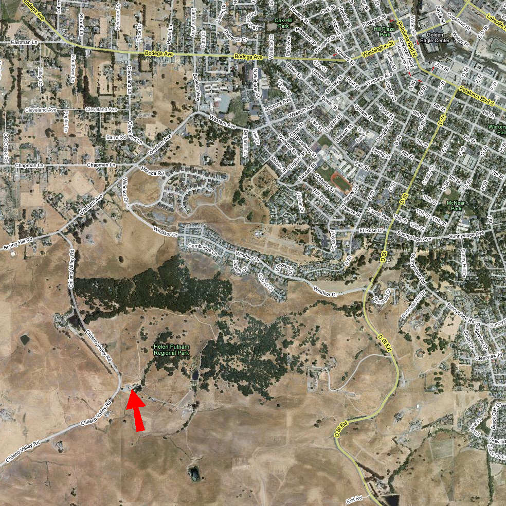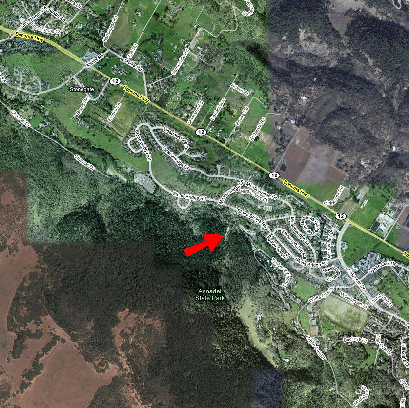 Annadel (Two Quarry Trail) (September 6, 2014)Yet another ride in Annadel. The book from which I got this route describes it as "the big-daddy loop" of the park, though it's still only 12 miles long. The Two Quarry Trail is a technical singletrack that's reportedly challenging. Meanwhile, the Ridge Trail, which this ride also partially traverses, is described as a true gem of "the new school of trail building." I can't wait to see the trail to understand what that means exactly. The parking place for this ride is a little unclear. The book shows a short dead-end spur leading to the trailhead and the parking place is marked right there, but Google Maps doesn't show it. In any case, we can figure it out when we get there. The red arrow in the map below basically points at the trailhead, rather than where I'm sure the parking will be.