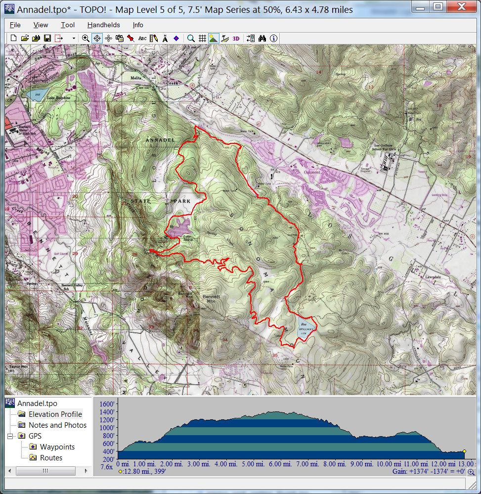 Annadel (Ridge Trail) (April 9, 2011)This ride contains 11 miles of all-singletrack riding in what must be one of the top-three mountain biking destinations in the North Bay. (About one mile is on pavement.) This park is described as lacking any tall mountains and grueling climbs, but as being a mountain biking playground.