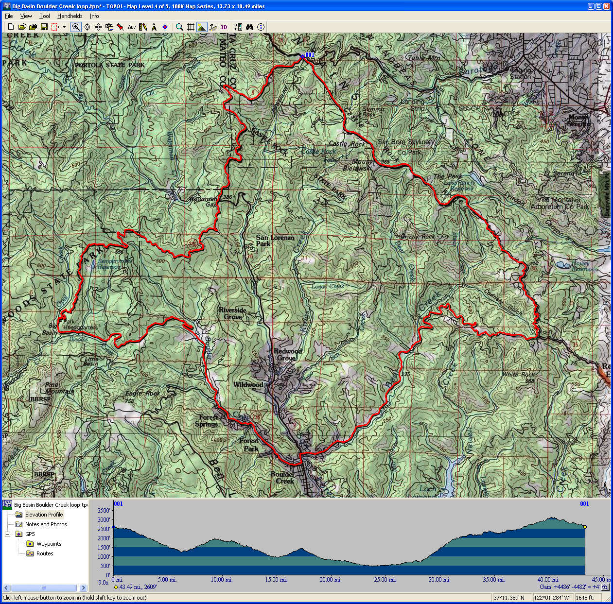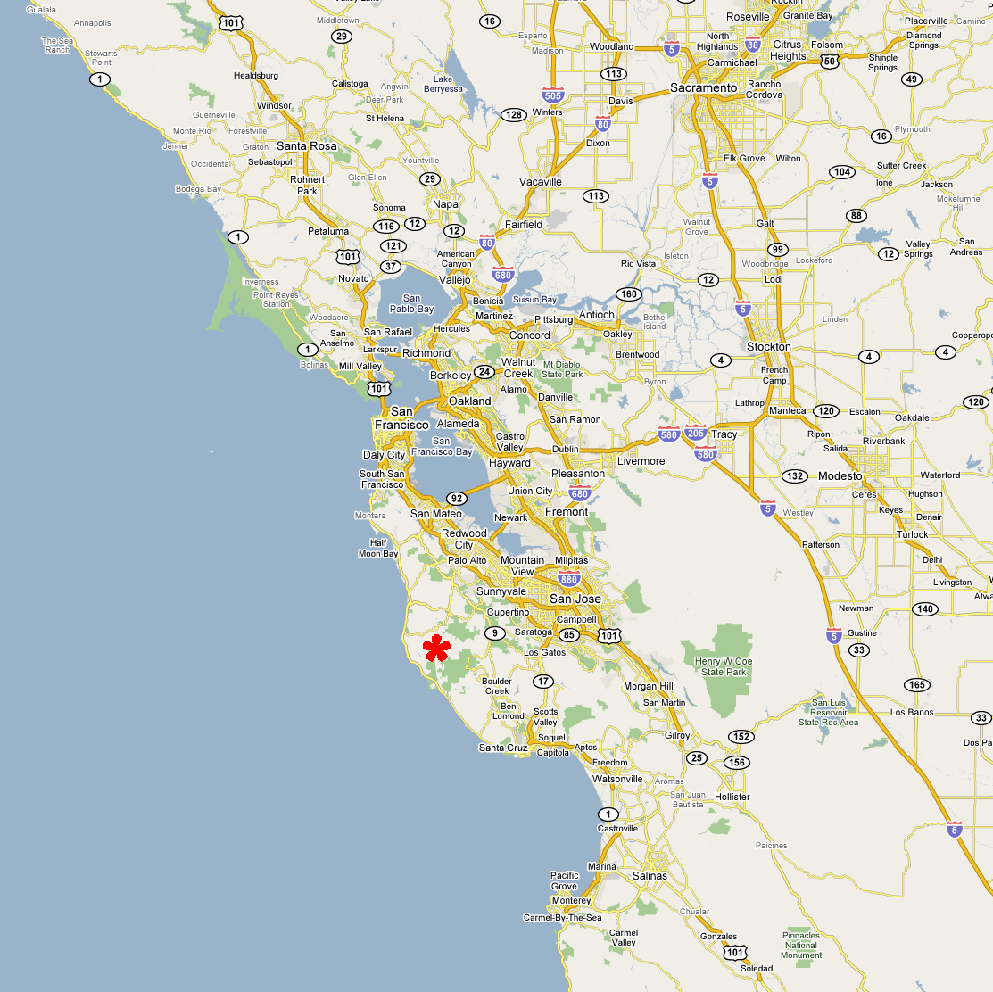 Big Basin Boulder Creek Loop (October 26, 2014)A long road ride. Starts at the trailhead of Saratog Gap, takes Route 9 into the center of Big Basin Park, then to Boulder Creek, and then back via Bear Creek road and Skyline Boulevard. No killer climbs. (Nothing worse than Route 9.) Just a long road tour and some giant redwood viewing in the mountains.
