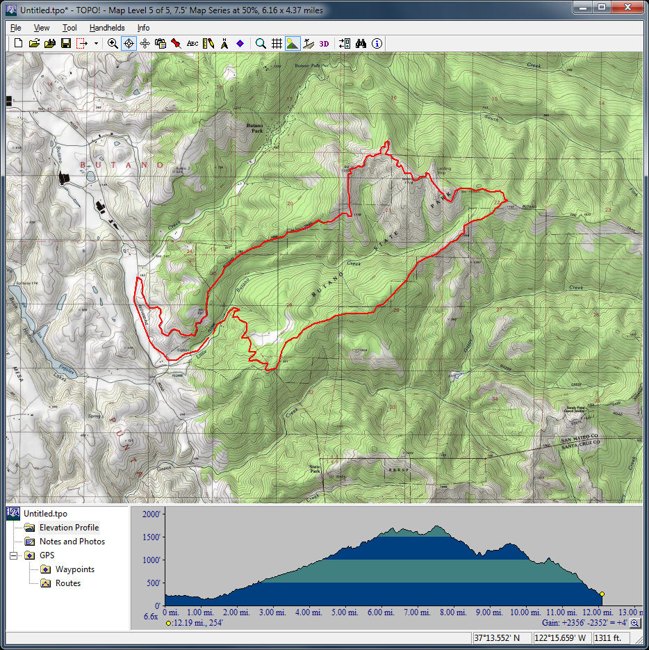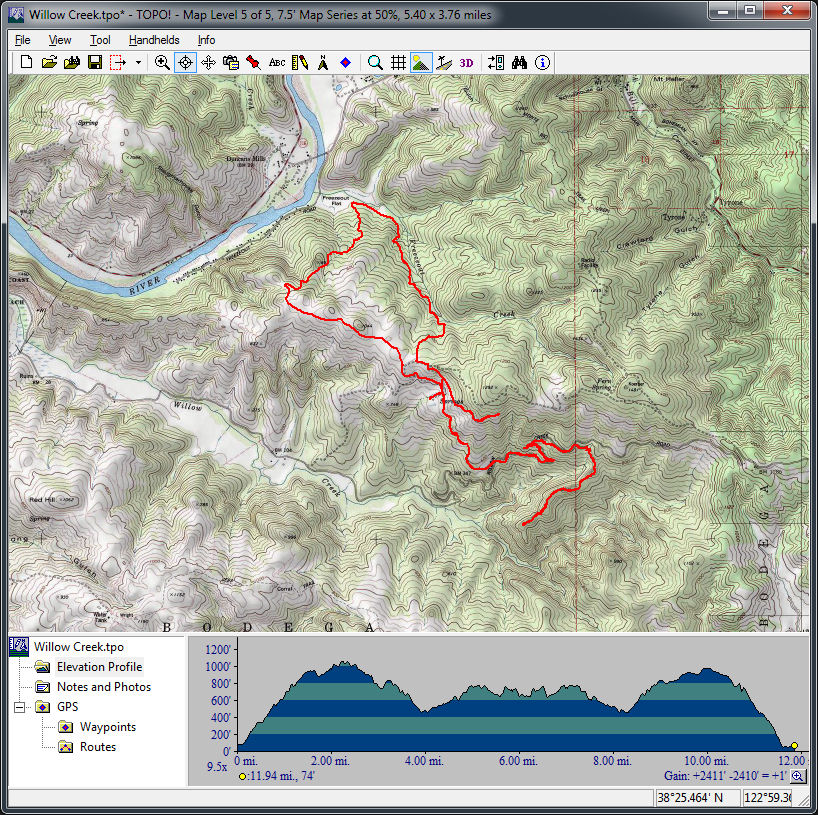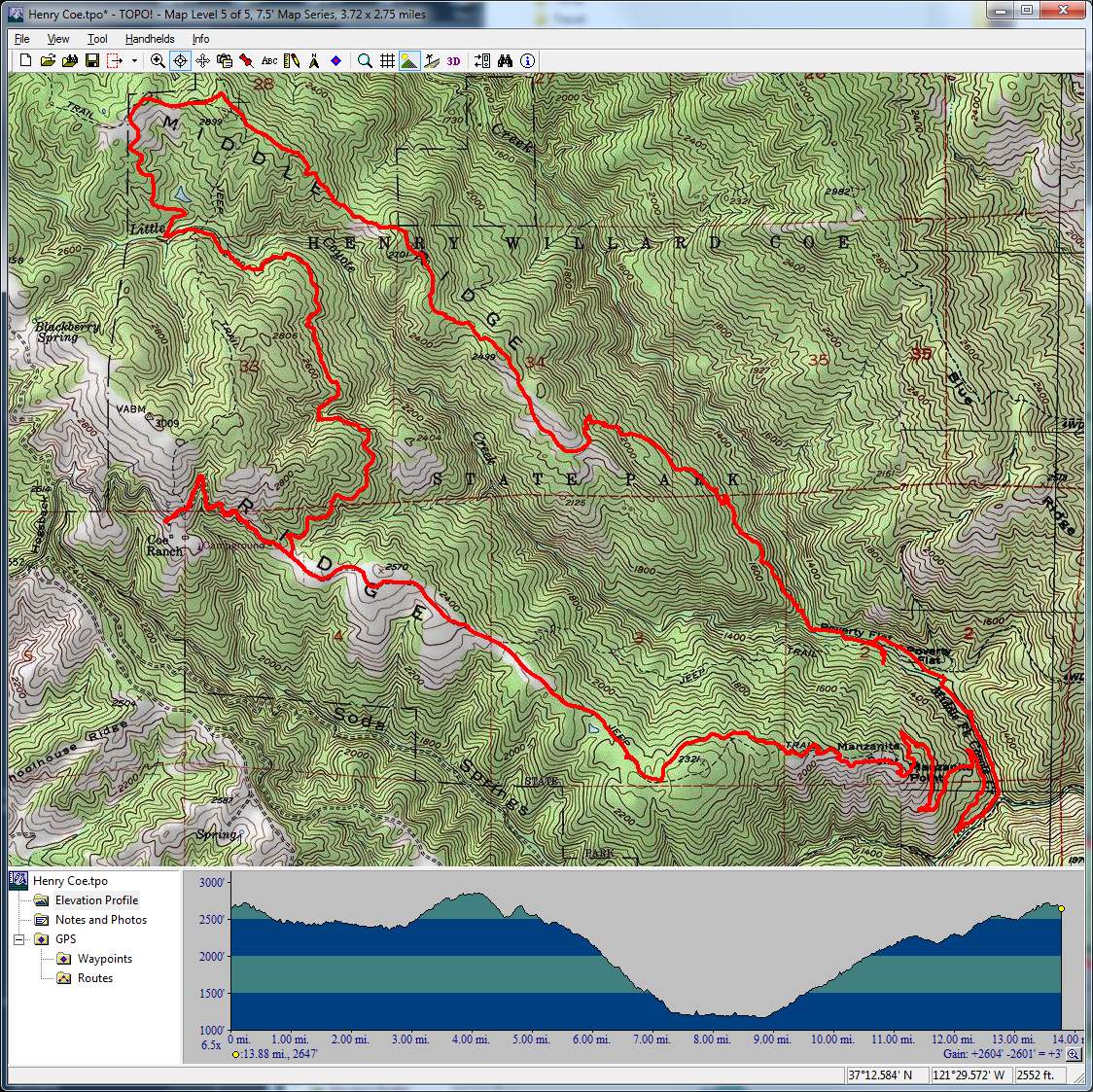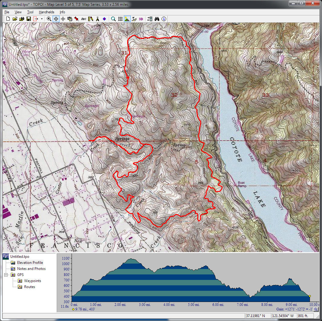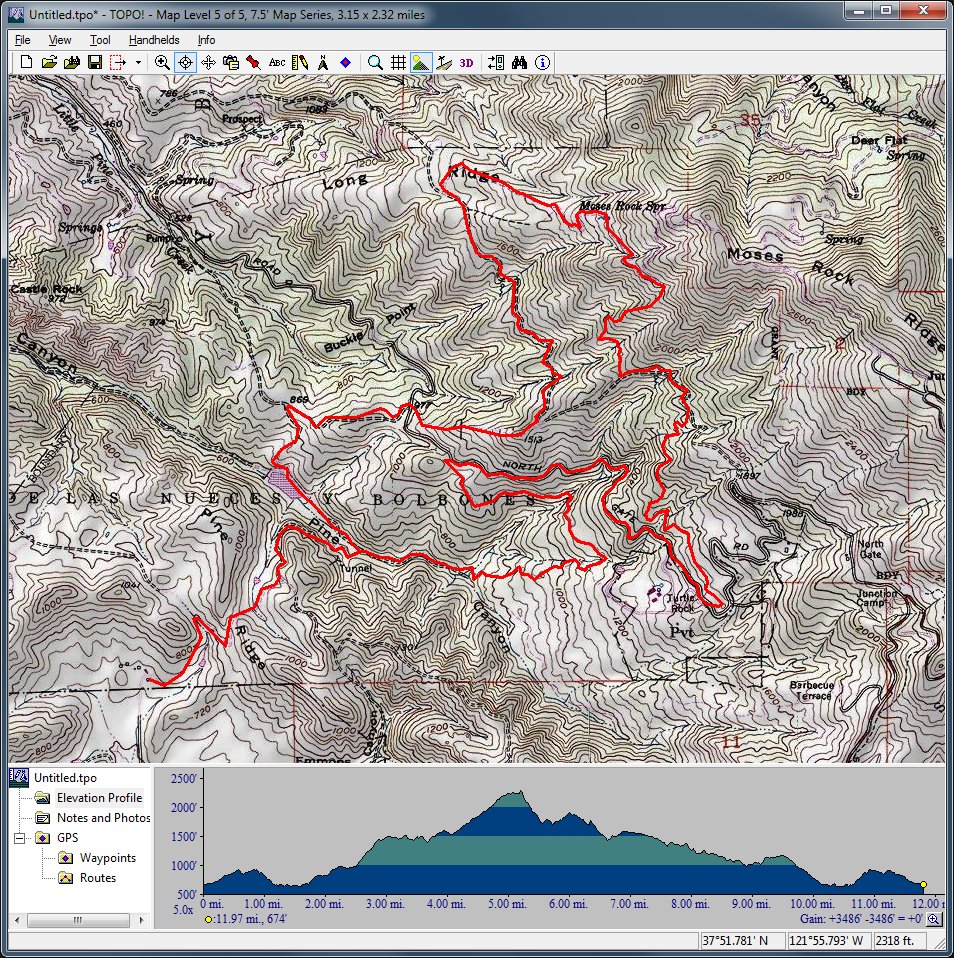 Henry Coe (November 30, 2013)An almost completely singletrack ride in the enormous Henry Coe. Ali and I had attempted a simpler version of this ride, but aborted due to tick infestation. Staying away from the May-to-August tick season when doing this ride should be enough to avoid that problem next time. The ride traverses at least a couple of interesting trails that follow the bottoms of steep valleys. There's also a nice and long singletrack descent on Middle Ridge, which should be pretty sweet. The route is a bit on the ambitious side (with 19 miles and 3000+ feet of total climb), but we can shorten it to as little as 13 miles if we need to.