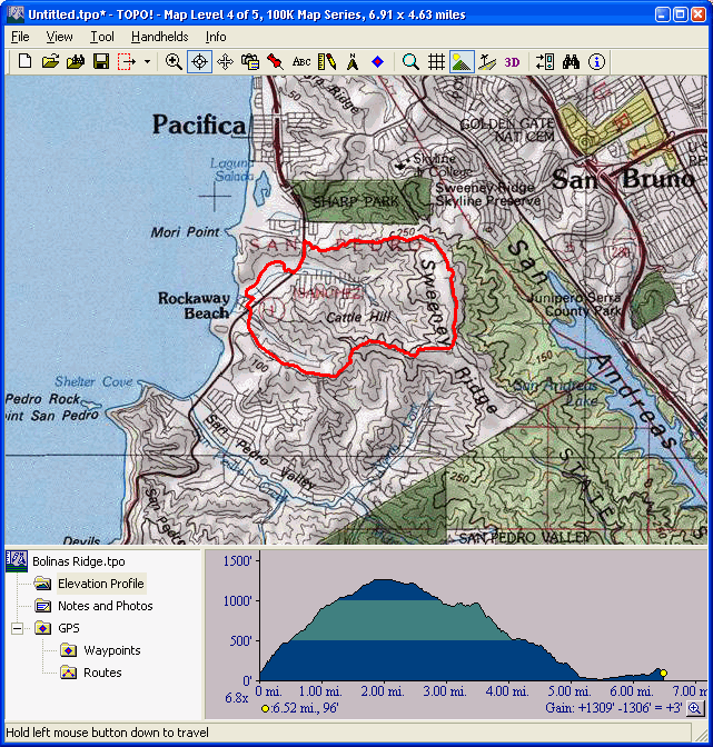 Sweeney Ridge (November 22, 2008)Combination road and fire road ride (about a 25% - 75% split). Starts out with a ridiculous climb (20%+). After the first mile, the climb settles into a more moderate rate (<10%). After the second mile is over, all the climbing is behind you. The highlights of the ride include stunning views to both the ocean and the bay (provided we can catch a clear day), passing through an abandoned Nike missile site (with standing buildings), and seeing the Portola Discovery Site and monument where the San Francisco bay was first discovered by the Europeans.